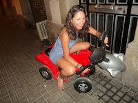 Barcelona with tiny streets and bars. We found a child's big wheel car and tried to get it to work but I wound up ripping the handle bars off it. Scott insisted he could fix it based solely on the fact that he has nieces and nephews. I got