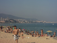 After class today, Valentina, Laura and I decided to hit the beach for a while (see photo). We hopped on the metro straight from class, bought some stupid celebrity magazines and laughed at all the gross topless women around us. The water was perfect! We had to start heading home around 8 because we were starving. On our way back, I started to imitate Jaume. "¿Bueno, pues, y que es la desfuerza aquí?" I said in his monotone voice. I really thought I made a great joke. He must use that word "desfuerza" 7,000 times a class. Laura and Valentina looked at me like I was crazy. "The what?!?!" Valentina said in her conundrum of an Italian-Irish accent. "La desfuerza." I repeated. Laura looked at me and said, "Do you mean, la destreza?"